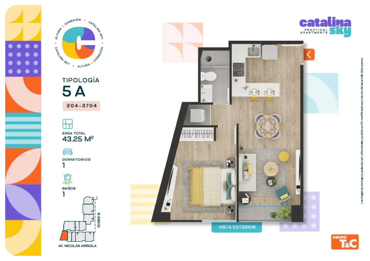 Tipología 5A | 1 DORM. / ÁREA TOTAL 43.25 m2
